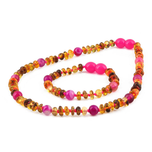 KALUNG AMBER DENGAN PINK FROST AGATE & PEARL UNTUK JUNIOR. JN98-P