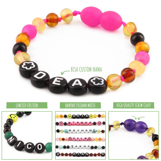 Gelang Amber CUSTOM NAMA untuk Bayi - Balita - Anak - Dewasa. Motif 2 - Motif 15