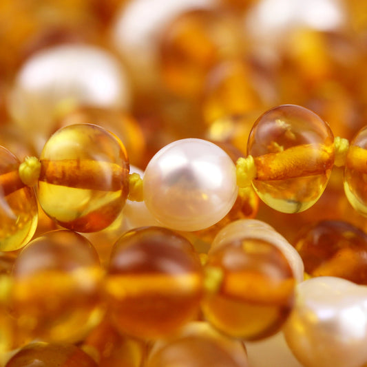 GELANG BAYI AMBER DENGAN WHITE PEARL. P1