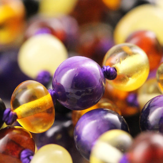 GELANG BAYI AMBER DENGAN PURPLE TIGER EYE. LE554-S