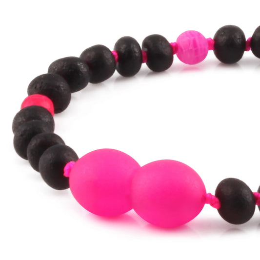 GELANG BAYI AMBER DENGAN PINK FROST AGATE. LE548-S