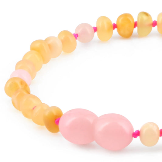 GELANG DEWASA AMBER DENGAN PINK LACE AGATE. BLE259