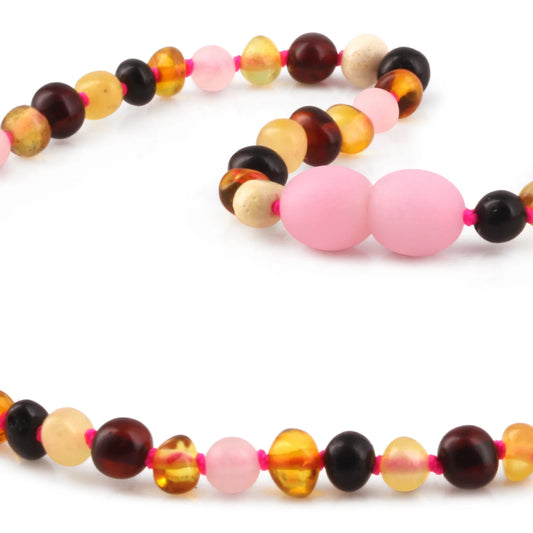 KALUNG BAYI AMBER DENGAN PINK LACE AGATE. LE458