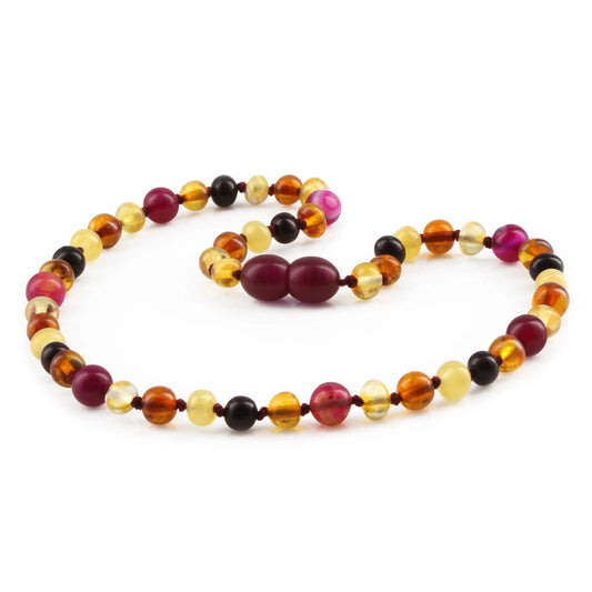 KALUNG BAYI AMBER DENGAN PINK LACE AGATE. LE458-S