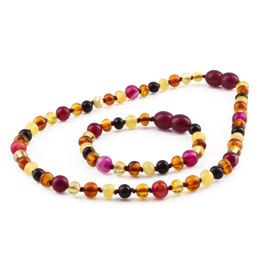 SET BAYI AMBER DENGAN PINK LACE AGATE. LE458