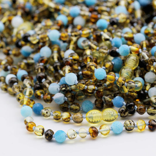 GELANG BAYI AMBER DENGAN BLUE FROST AGATE LE455