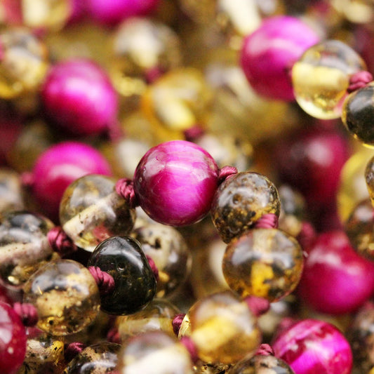 GELANG BAYI AMBER DENGAN MAGENTA TIGER EYE. LE456 V2