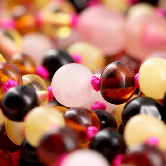 GELANG BAYI AMBER DENGAN ROSE QUARTZ MATTE. LE459