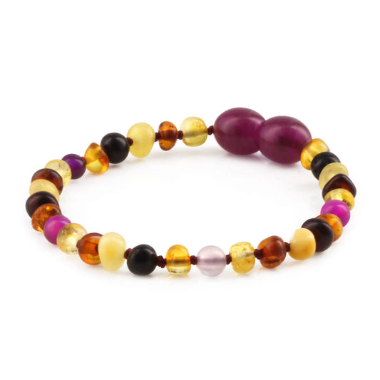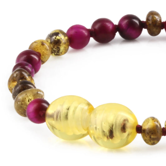 GELANG BAYI AMBER DENGAN MAGENTA TIGER EYE. LE456