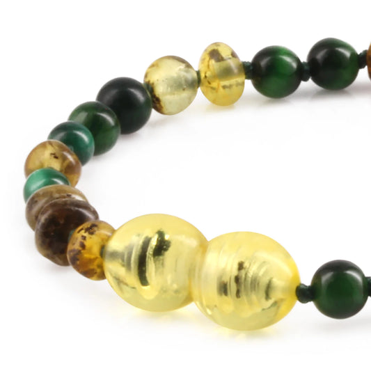 GELANG BAYI AMBER DENGAN GREEN TIGER EYE. LE457 V2