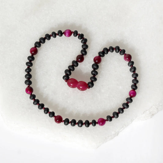 KALUNG BAYI AMBER DENGAN MAGENTA TIGER EYE. LE571