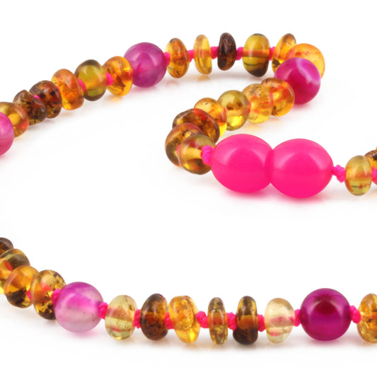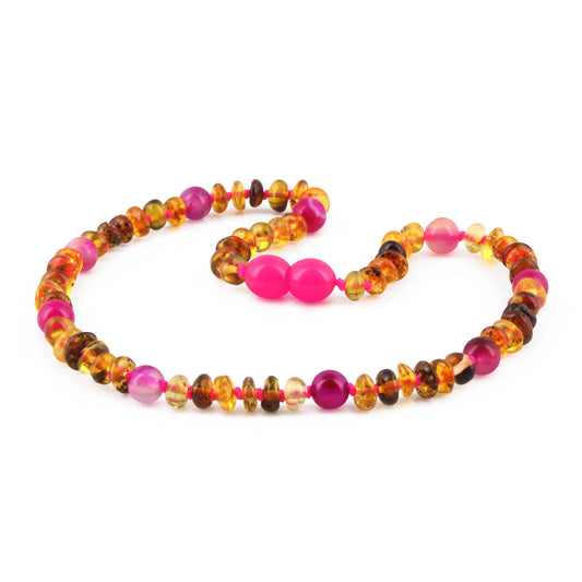 KALUNG JUNIOR AMBER DENGAN PINK LACE AGATE. JN105 V2