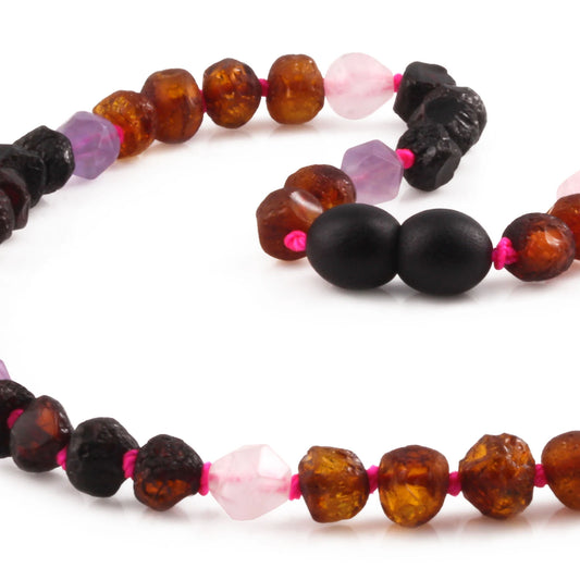 KALUNG AMBER DENGAN AMETHYST & ROSE QUARTZ UNTUK JUNIOR. JN110