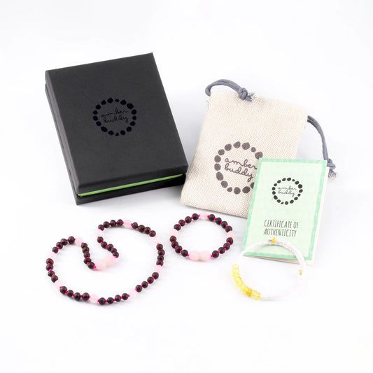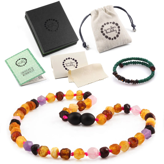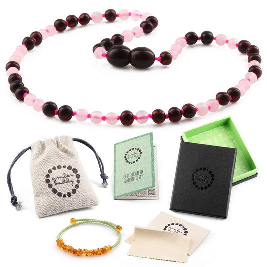 SET BAYI AMBER DENGAN AMETHYST & ROSE QUARTZ. LE560