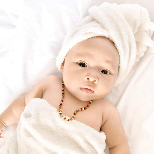 GELANG BAYI AMBER DENGAN PURPLE FROST AGATE. LE488