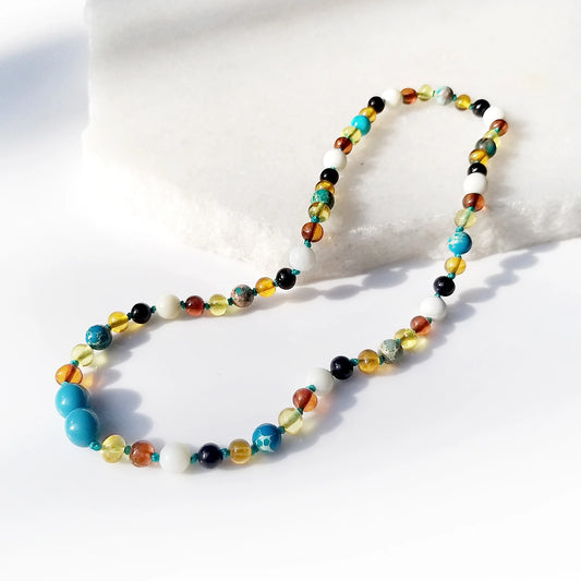 KALUNG AMBER DENGAN PERU AMAZONITE & AZURITE UNTUK JUNIOR. JN108