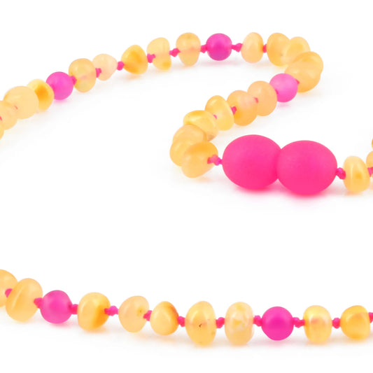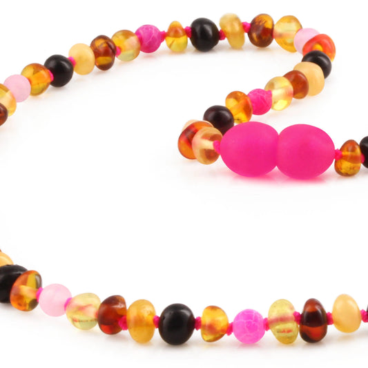 KALUNG AMBER DENGAN PINK FROST AGATE UNTUK JUNIOR. JN111