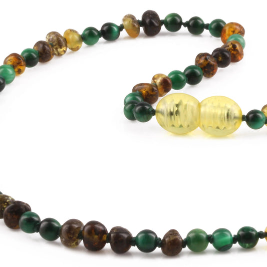 KALUNG AMBER DENGAN GREEN TIGER EYE UNTUK JUNIOR. JN103 V2