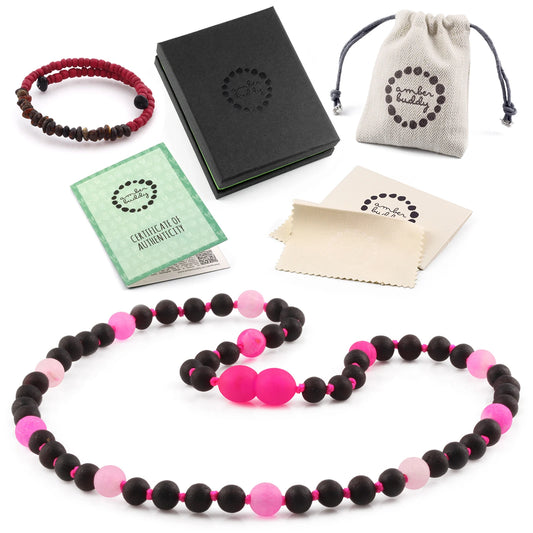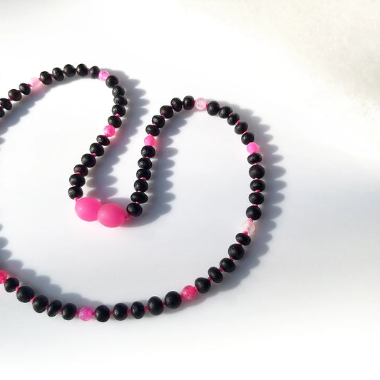 KALUNG AMBER DENGAN PINK FROST AGATE UNTUK JUNIOR. JN87-S