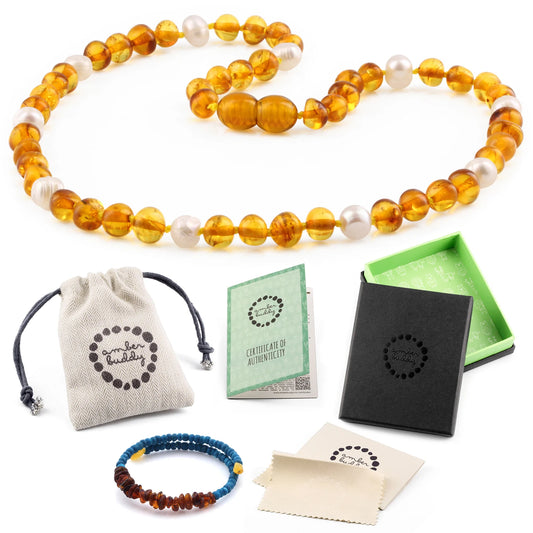 KALUNG MUTIARA DENGAN BALTIC AMBER UNTUK JUNIOR. P2