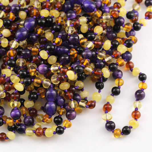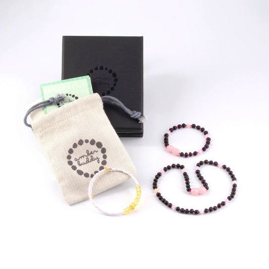 SET BAYI AMBER DENGAN AMETHYST & ROSE QUARTZ. LE560