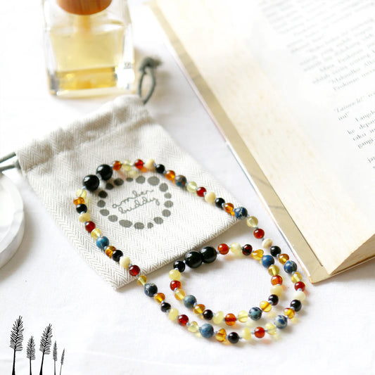 SET BAYI AMBER DENGAN AMETHYST & ROSE QUARTZ. LE561