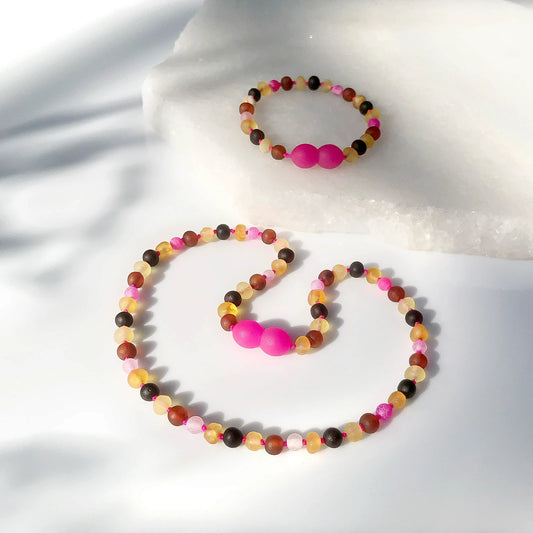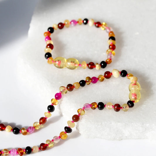 SET BAYI AMBER DENGAN PINK LACE AGATE. LE559