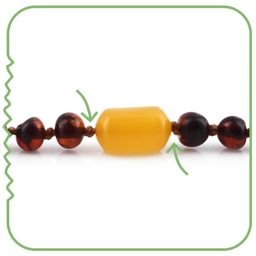 Amber Buddy menggunakan teknik pengikatan dengan dua tali yang membuat kalung lebih tahan lama dan kuat.