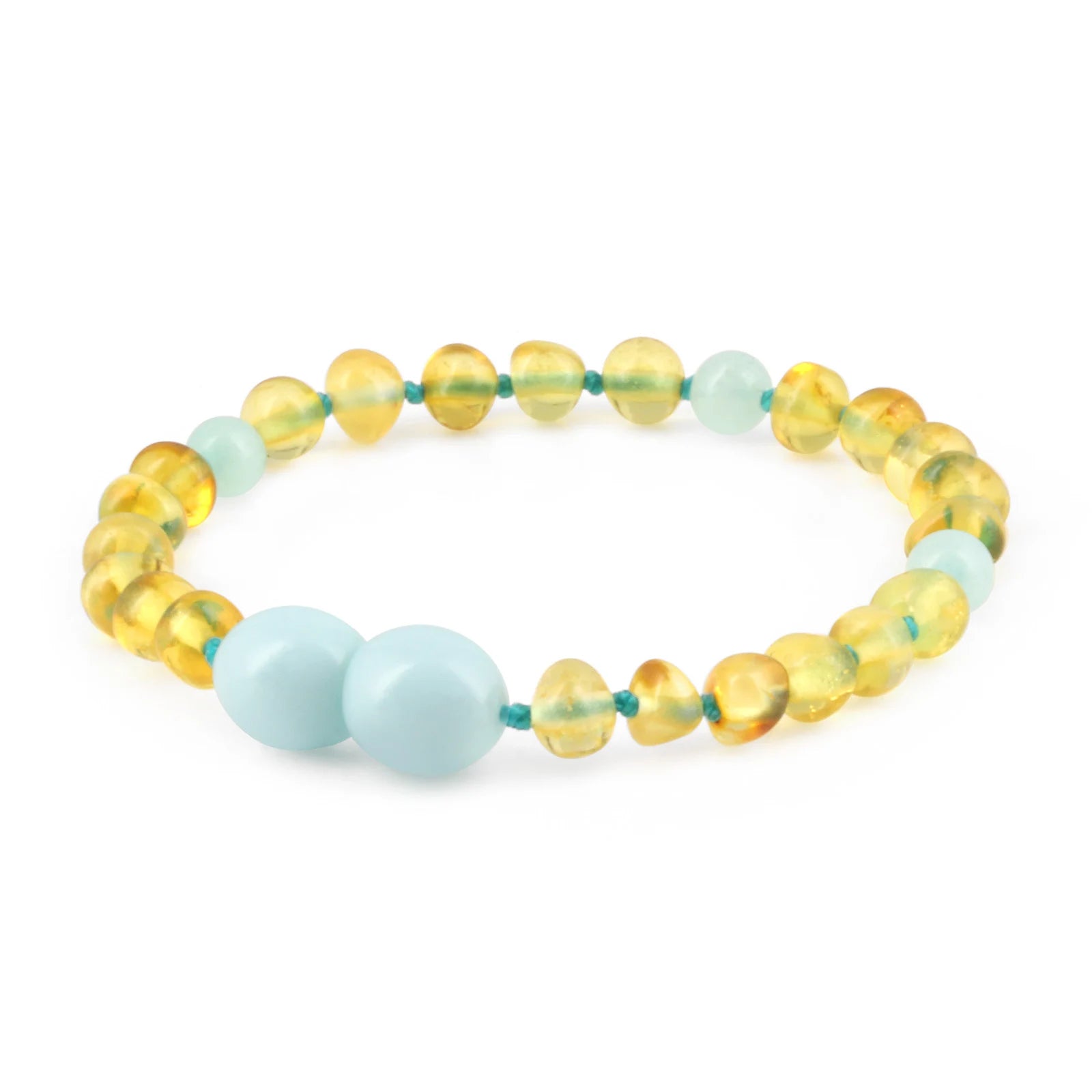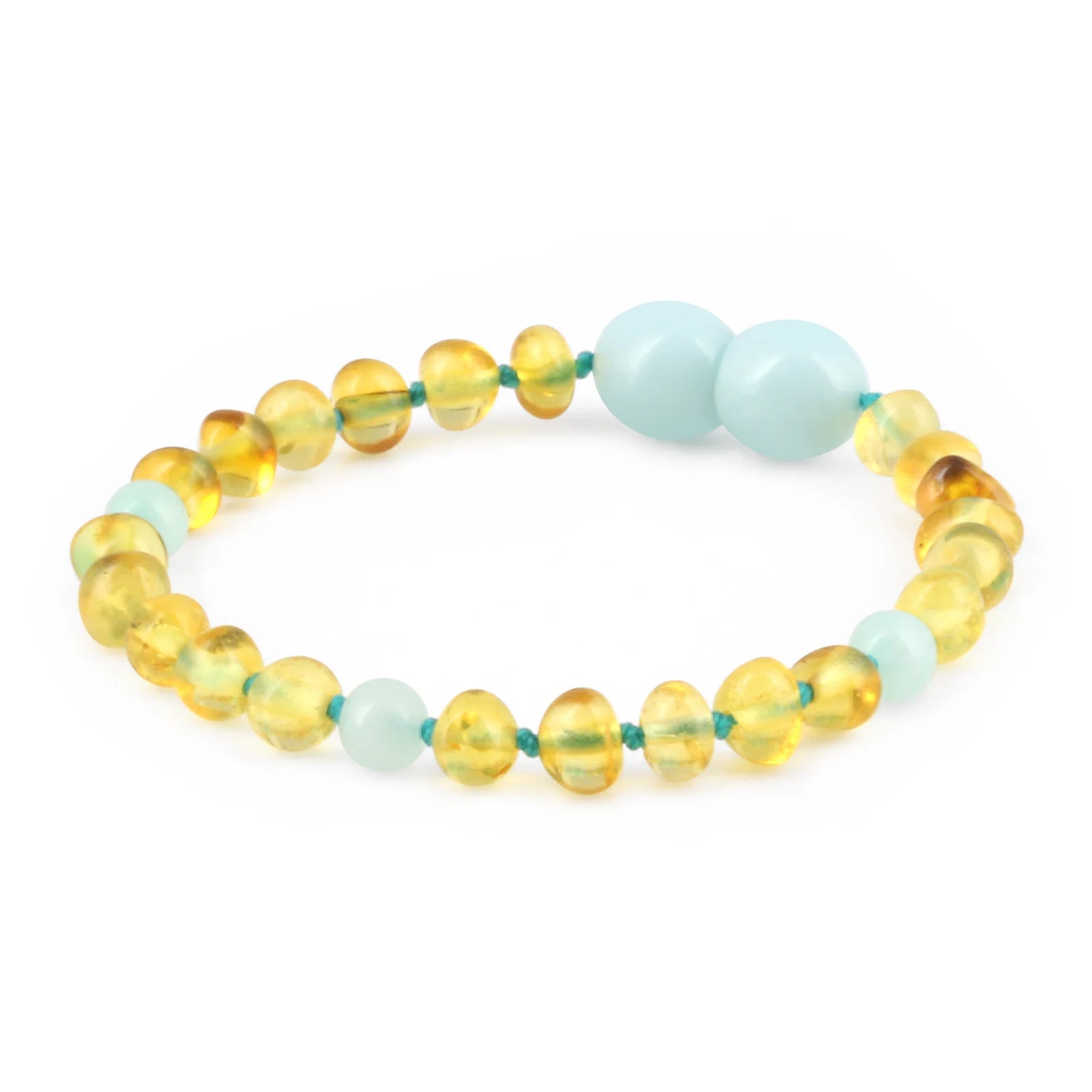 GELANG BAYI AMBER DENGAN SKY BLUE JADE. LE574