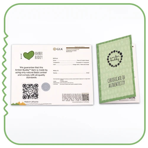 Semua produk Amber Buddy dibuat handmade di Lithuania menggunakan Baltik amber alami dari wilayah Baltik.