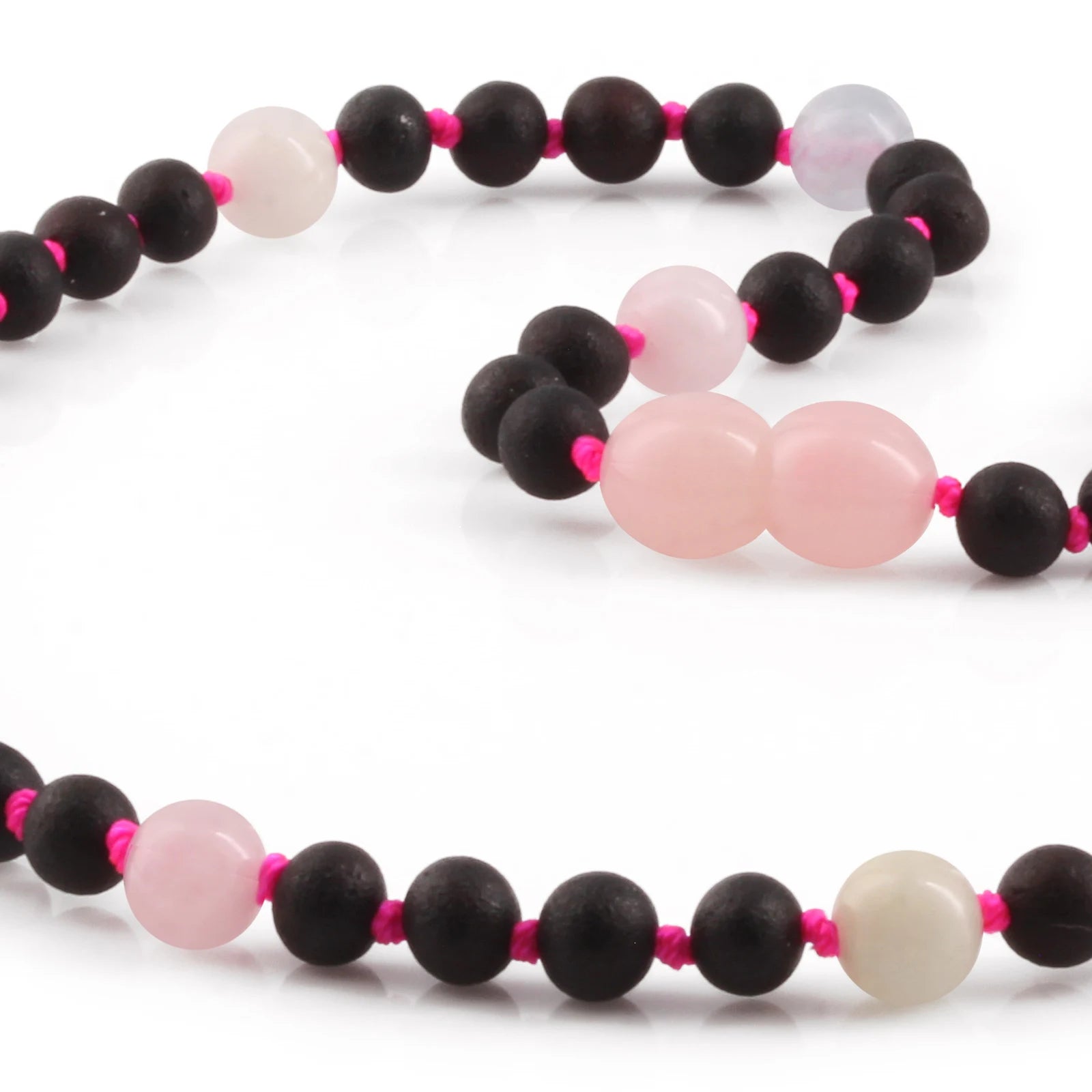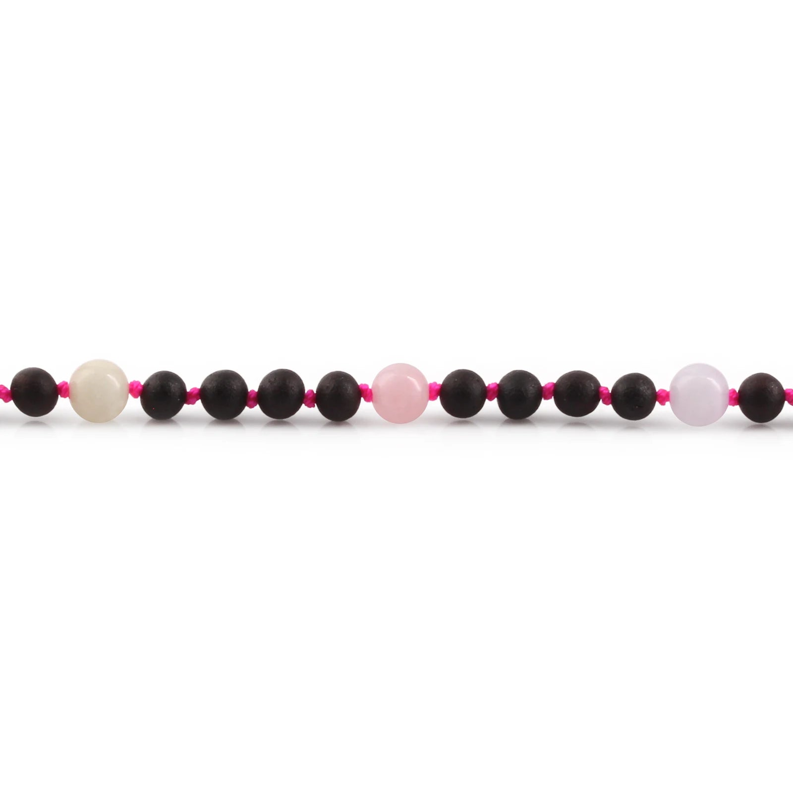 Amber Buddy menggunakan teknik pengikatan dengan dua tali yang membuat kalung lebih tahan lama dan kuat.