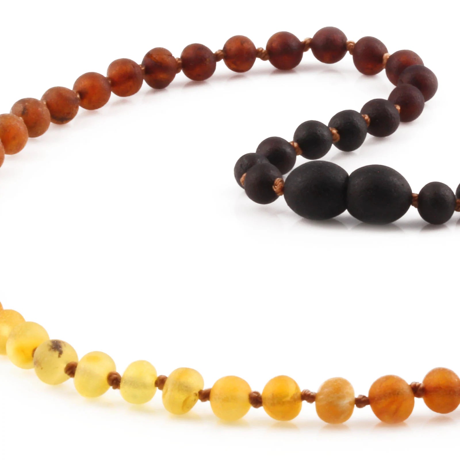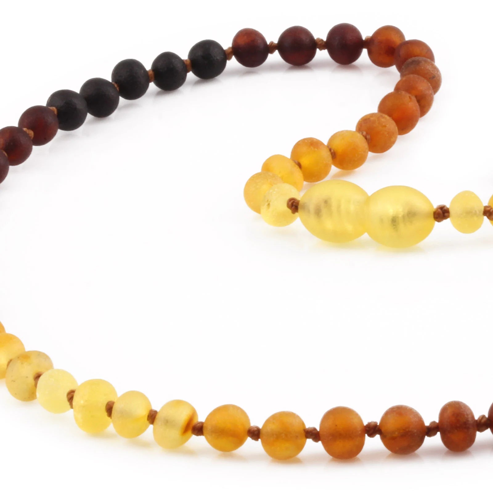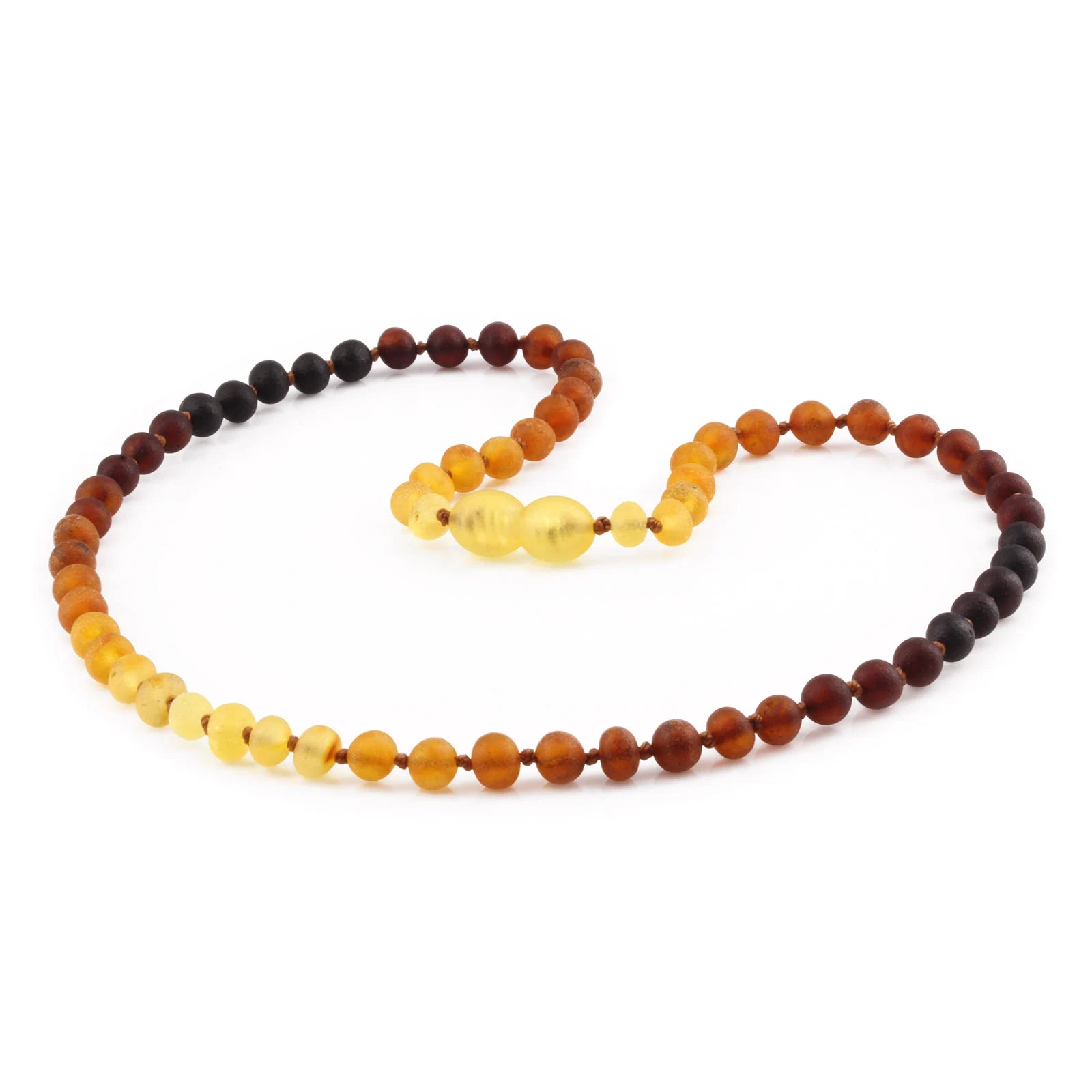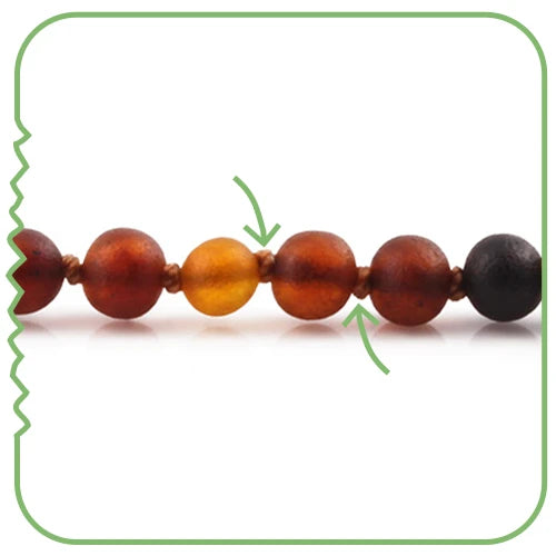 Amber Buddy menggunakan teknik pengikatan dengan dua tali yang membuat kalung lebih tahan lama dan kuat.
