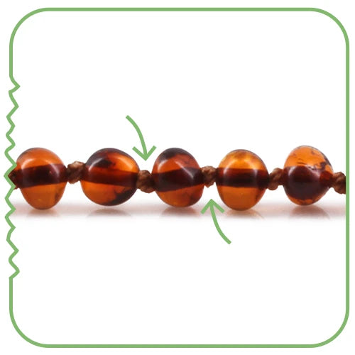Amber Buddy menggunakan teknik pengikatan dengan dua tali yang membuat kalung lebih tahan lama dan kuat.