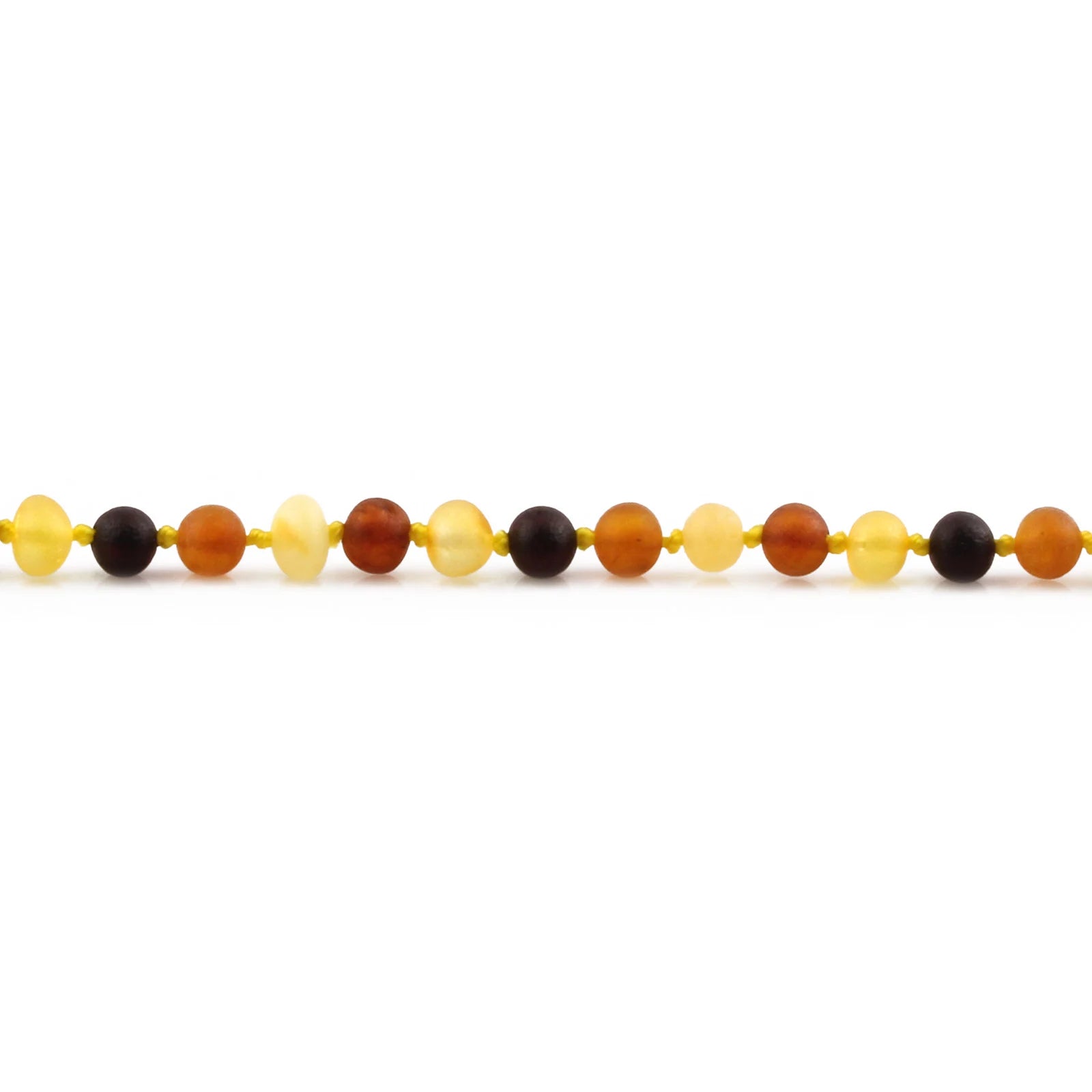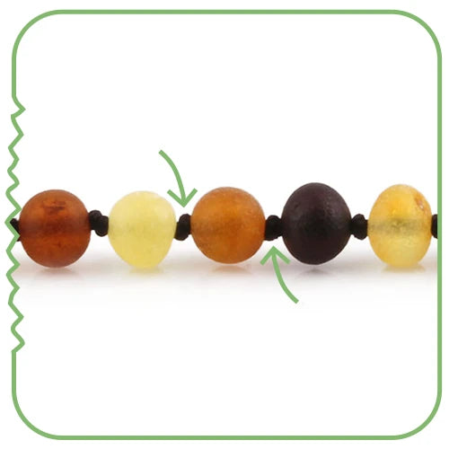 Amber Buddy menggunakan teknik pengikatan dengan dua tali yang membuat kalung lebih tahan lama dan kuat.
